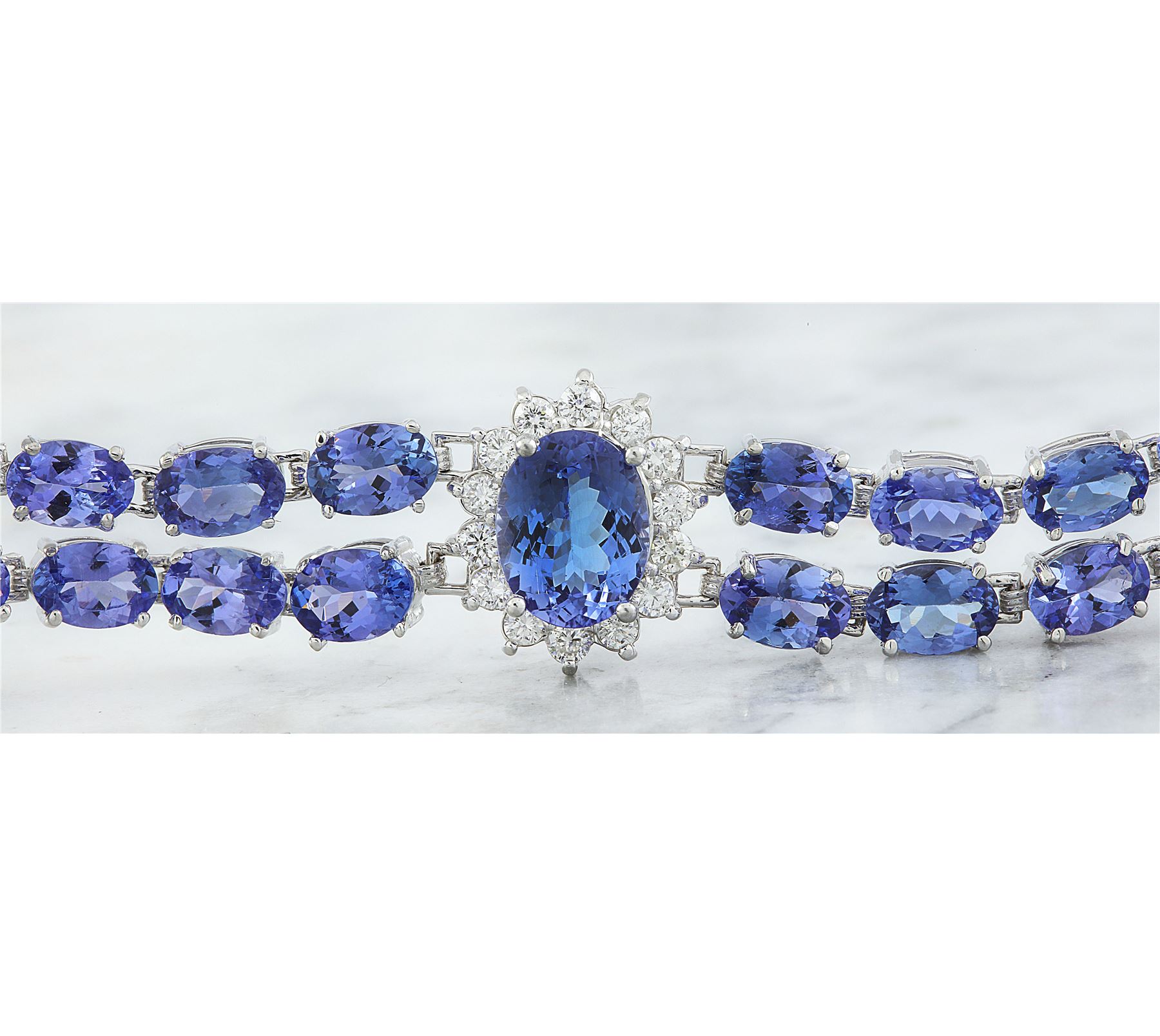 25.20 CTW Tanzanite 14K white Gold Diamond Bracelet