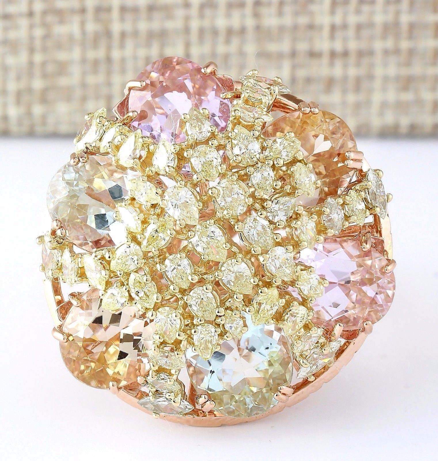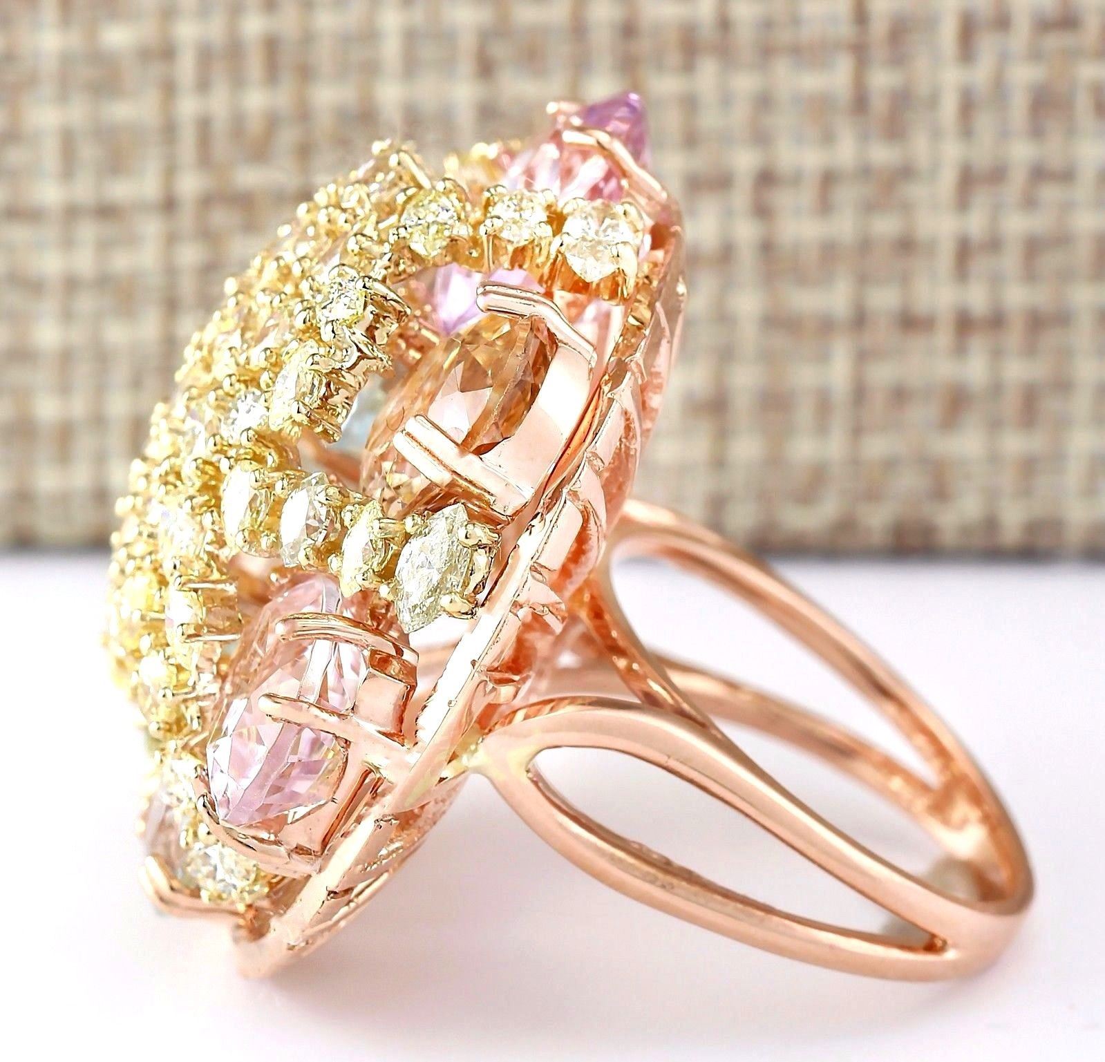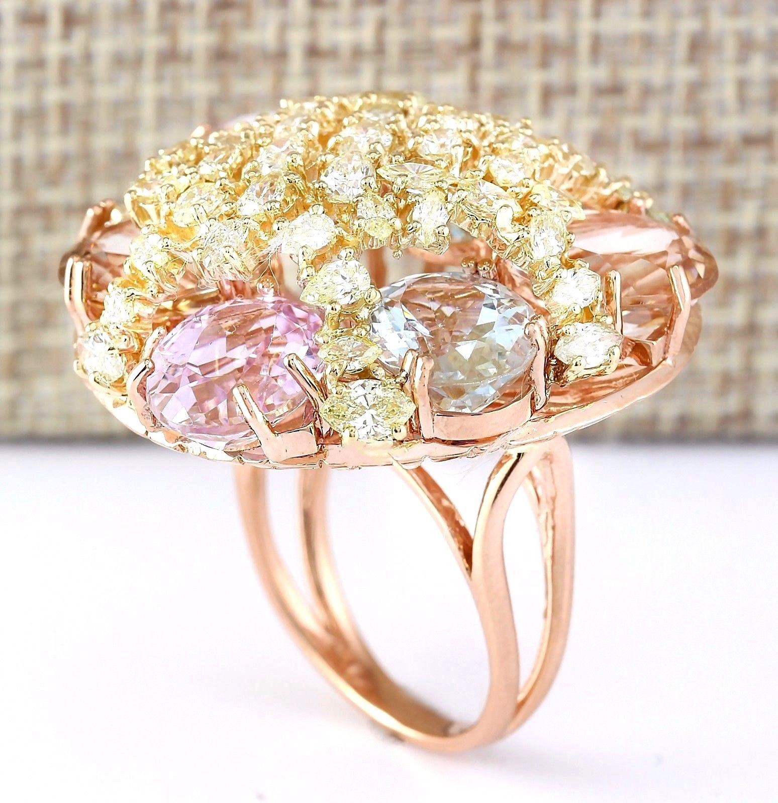 25.36 CTW Natural Multi Stone Morganite Kunzite Diamond Ring In 14k Rose Gold