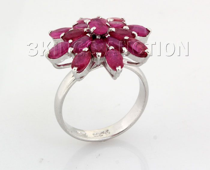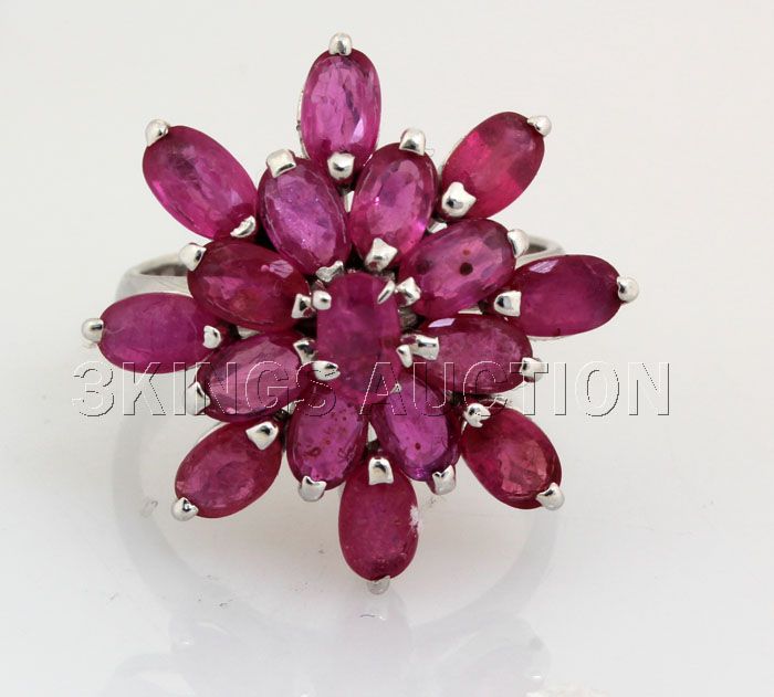 25.36CTW Flower Cluster Pink Ruby Silver Ring **|**|** Cluster of Oval Shape Pinkish Ruby Gemstone in Silver Ring; Size: 5x3mm; ctw: 5.95; stone count: 17; gram weight: 3.88; ring size: 7.75 ; MSRP: $1100