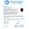 One electronically tested 14KT yellow gold ladies cast ruby and diamond ring with a bright polish finish. The featured ruby is set within a diamond and ruby bezel supported by a ribbed under gallery, completed by a two millimeter wide band. Identified with markings of "K14". Condition is new, good workmanship. Containing: One prong set oval mixed cut natural ruby approximate weight of 24.28ct., clarity is heavily included, type II, dark, very slightly brownish, red color, (GIA R 7/3), cut is good. Transmitting light somewhat diffusely, translucent. Naturally occurring internal & external characteristics are present. Indications of laboratory high temperature heat treatment, with glass & flux additives. Graded in the setting. Ruby has a low tolerance to rhodium plating, repolishing the surface, & ultrasonic cleaning. Ten prong set round mixed cut natural rubies approximate total weight of 1.12ct., clarity is heavily included, type II, dark, very slightly brownish, red color, (GIA R 7/3), cut is good. Transmitting light with some distortion, transparent to translucent. Naturally occurring internal & external characteristics are present. Color grade is an average for the group. Graded in the setting. Ten prong set round brilliant cut diamonds approximate total weight of 10 Stones = 0.78ct. The group is composed of a mix of natural faint yellow and very light yellow diamonds. Graded in the setting. Clarity: I-1 to I-2. Total Weight of Colored Stones 25.40ct. Total Weight of Diamonds 0.78ct. Total Weight of Ring 11.08gm. AIG Appraised at $7,315.00.