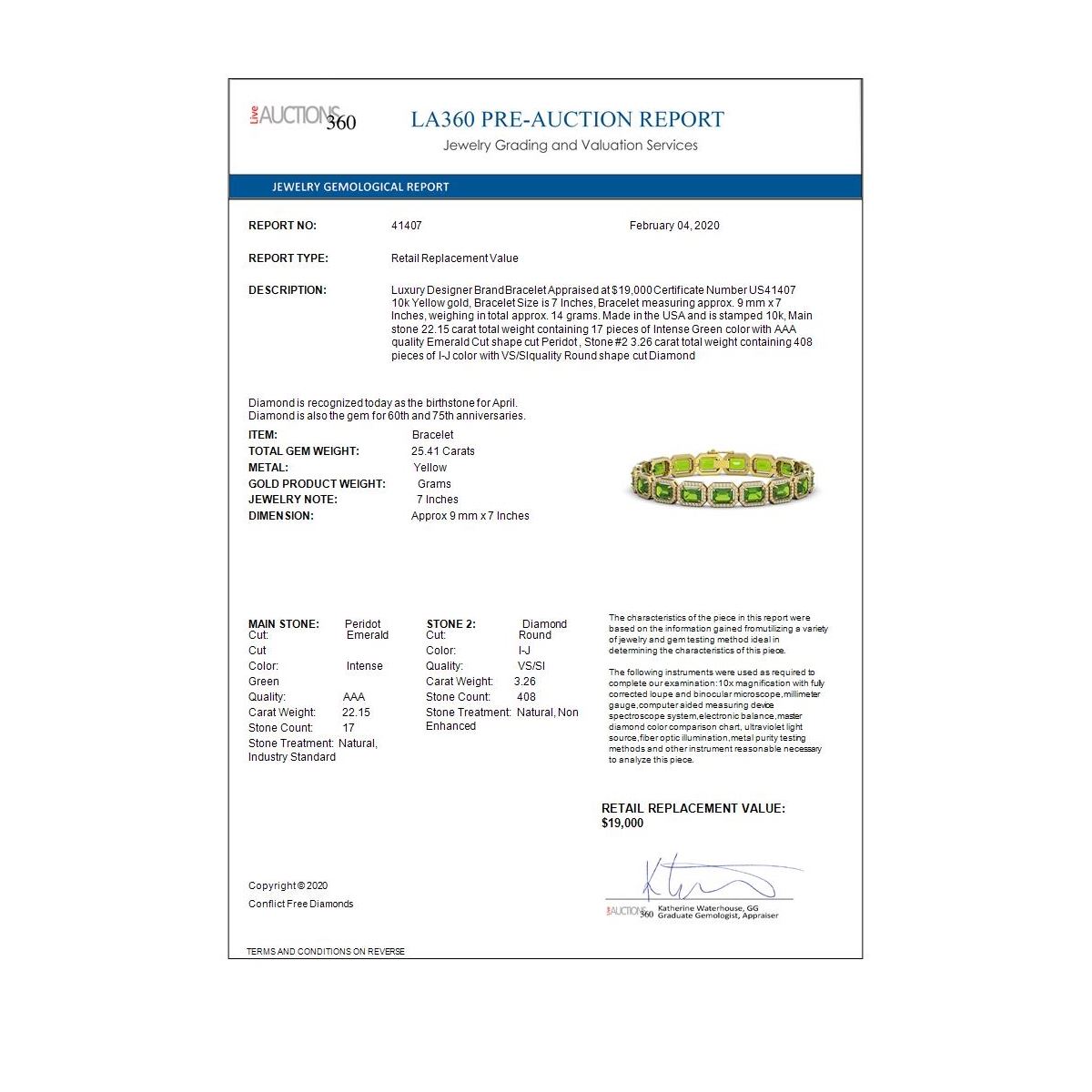REF-345R5K - SKU: 41407 ---- 25.41 ctw Peridot & Diamond Micro Pave Halo Bracelet 10k Yellow Gold