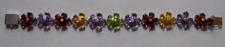 25.420g Bracelet of Citrine,Peridot,Amethyst and Garnet in Silver