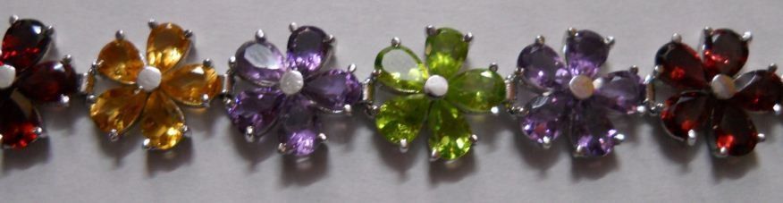 25.420g Bracelet of Citrine,Peridot,Amethyst and Garnet in Silver