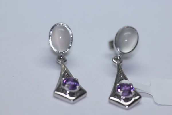 25.70 CTW MOON STONE AND AMETHYST EARINGS .925 STERLING **|**|** 25.70 CTW MOON STONE AND AMETHYST EARINGS .925 STERLING SILVER AMETHYST WEIGHT 0.97 CTW MOON STONE 3.02 CTW ; MSRP: $165