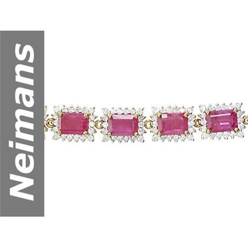 </tr></table><table border=0 width=100% cellspacing=0 cellpadding=10><tr><td valign=top style='background-repeat: no-repeat; font-family: Verdana; font-size: 8pt'><b><!-- ///START/// INSERT JEWELRY SPECIFIC DATA --><font size=5>Graduate Gemologist Certified 25.7 Carat Ruby & Diamond Bracelet elegantly set in solid 14kt gold!!</font><font size=5>