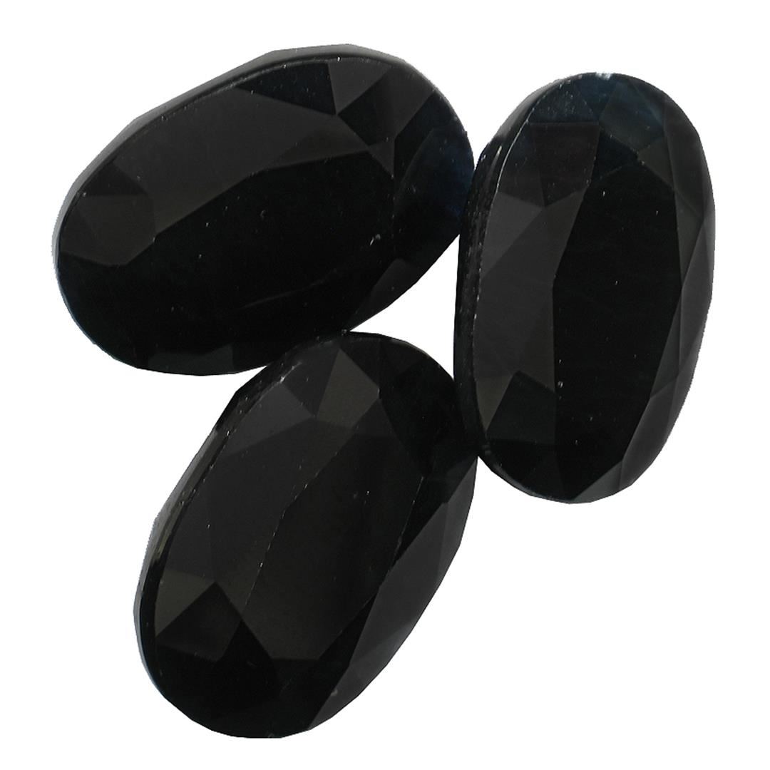 Three oval mixed cut natural blue sapphires, measuring 14.00 x 10.00 x 0.00mm, exact total weight 25.77ct., clarity is heavily included, type II, very dark, very slightly grayish, blue color, (GIA B 8/3), cut is good. Measurements are an average for the group. Transmitting light very diffusely, opaque, Naturally occurring internal & external characteristics are present, Indications of multiple laboratory enhancements, including high temperature heat treatment. Westfield Appraised at $2,370.00.