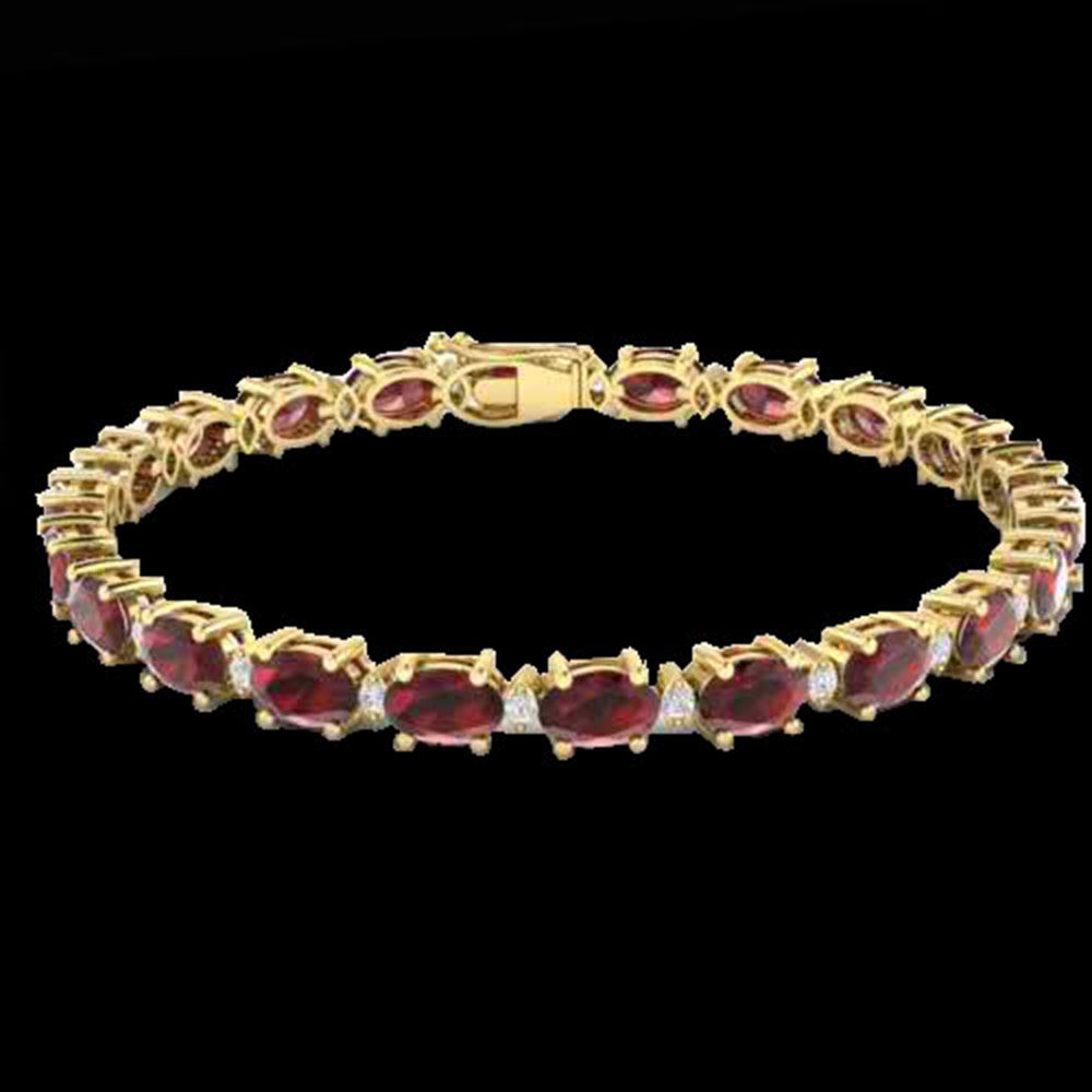 REF-119N3F - SKU: 29454 ---- 25.8 ctw Garnet & VS/SI Certified Diamond Eternity Bracelet 10k Yellow Gold