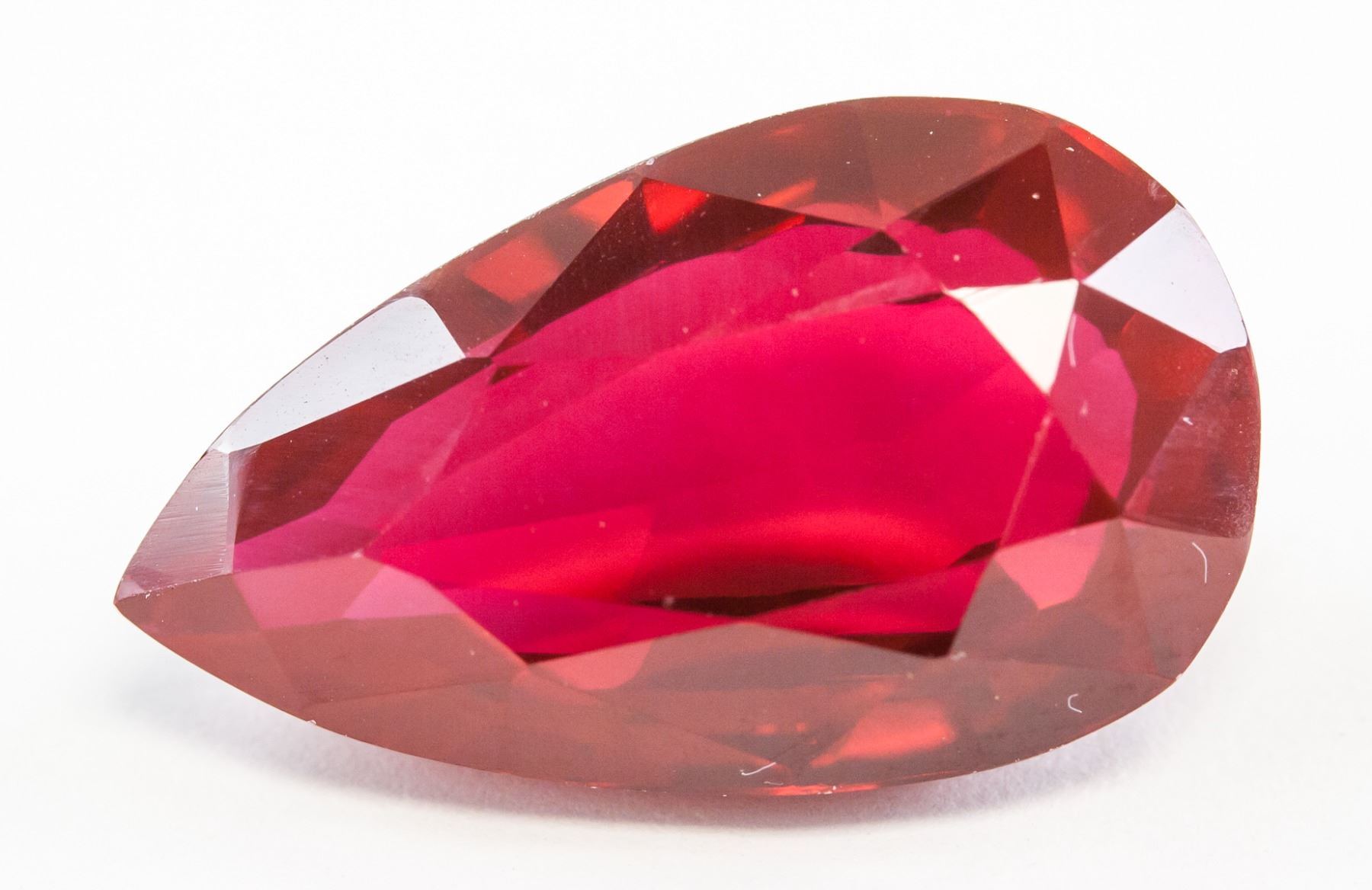 One (1) 25.90 ct pear cut red natural ruby. Origin: Mogok. Accompanied with GGL certificate. 23.71 x 13.93 x 9.07 mm.