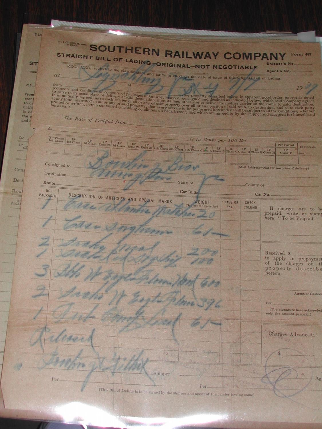 25+ ASSORTED RAILWAY FREIGHT BILLS & BILLS OF LADING, ALL SOUTHERN RAILWAY 1907-1929