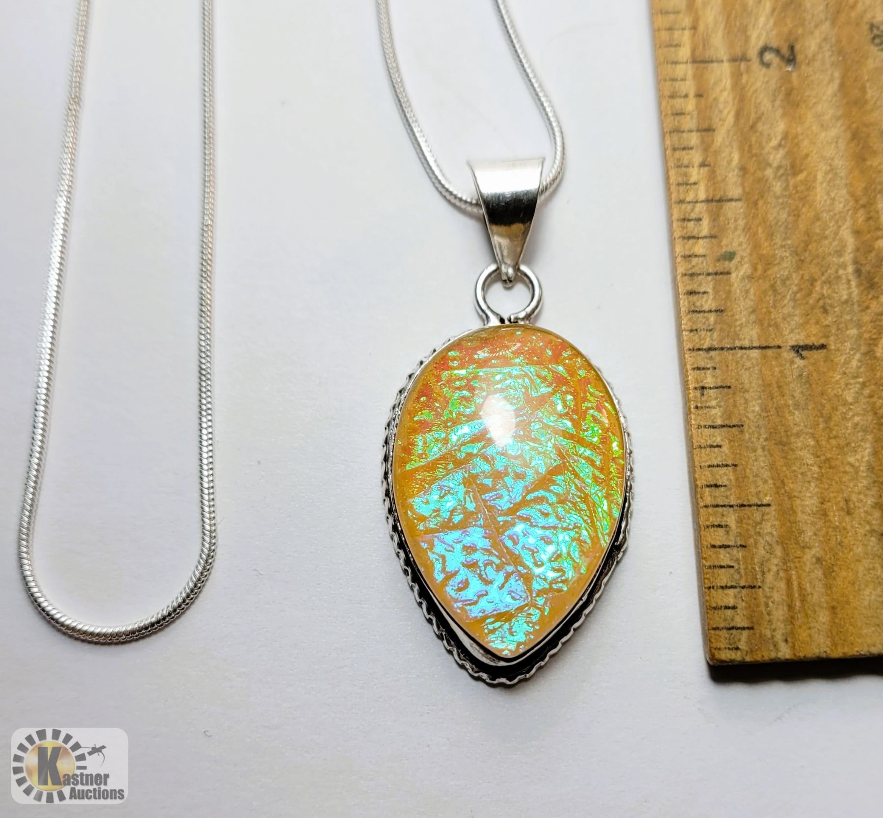 ON 18" CHAIN, BOTH CHAIN AND PENDANT ARE STAMPED 925 SILVER PLATE. JEWELLERY