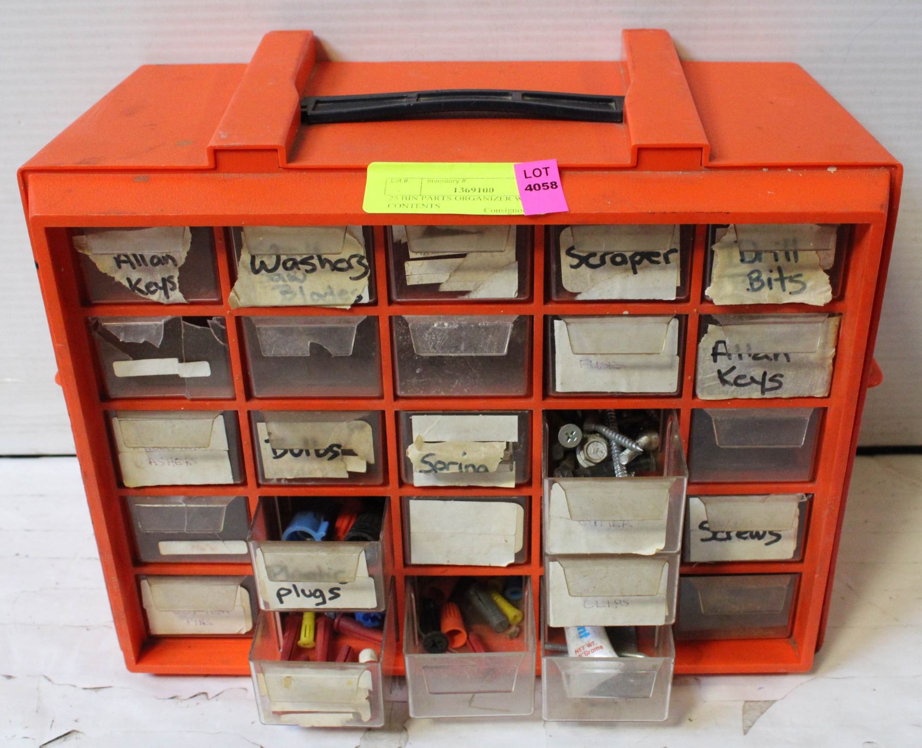 25 BIN PARTS ORGANIZER WITH CONTENTS