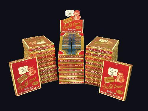 25 Boxes of Gold Tone Razor Double Edge Blades, new old stock, 20 packages of 4 in each box.