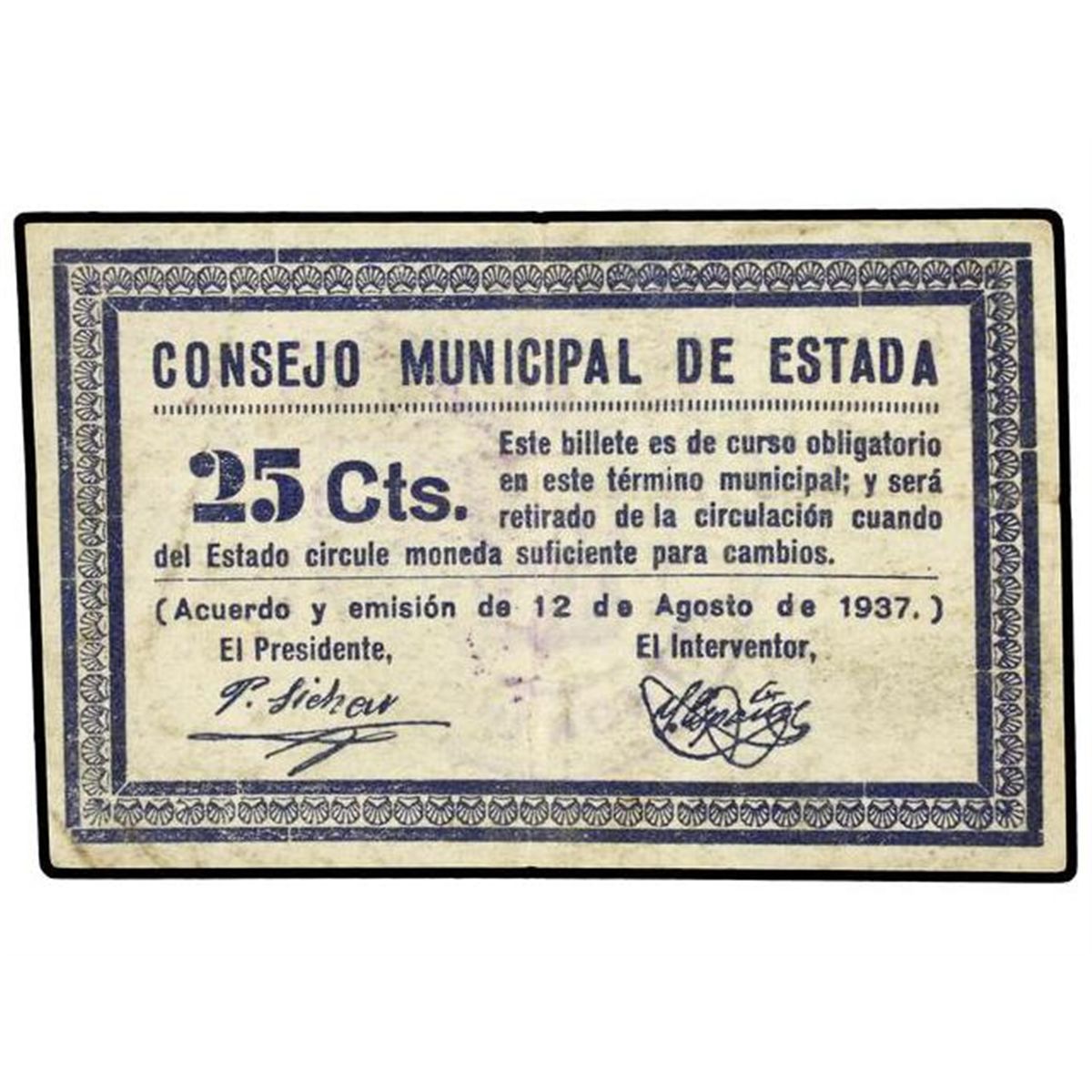 25 Céntimos. - 12 Agosto 1937. - C.M. de ESTADA (Huesca). - Mont-619C. MBC+. - -