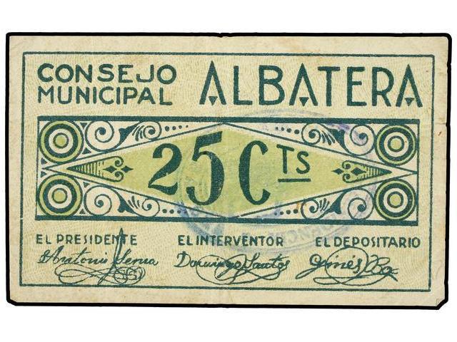 25 Céntimos. 20 Agosto 1937. C.M. de ALBATERA (Alicante). MUY ESCASO. Mont-51A; TV-46. MBC+.
