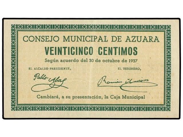 25 Céntimos. 30 Octubre 1937. C.M. de AZUARA (Zaragoza). Mont-211A. EBC-.