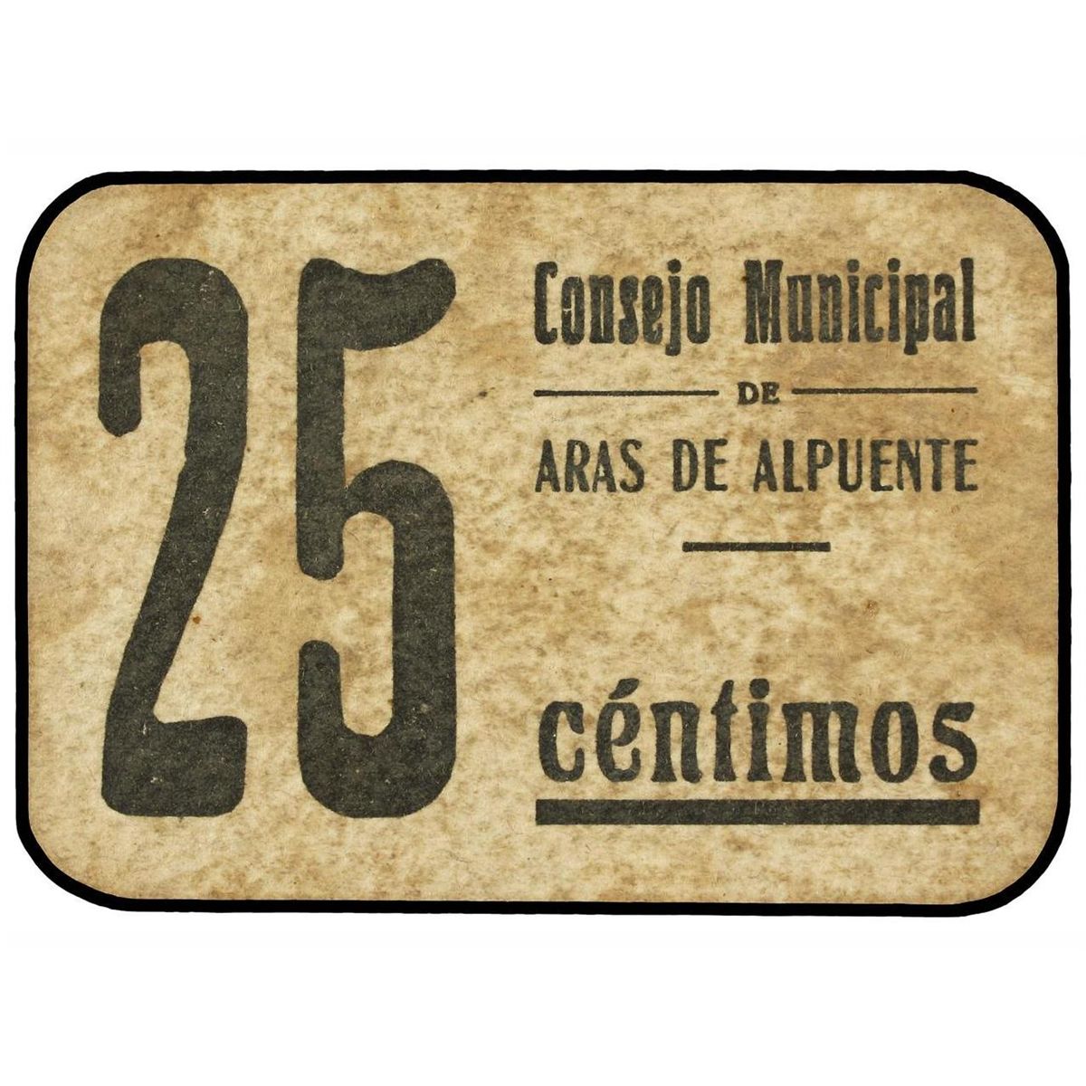 25 Céntimos. - C.M. de ARAS DE ALPUENTE (Valencia). - Cartón. RARÍSIMO. Mont.-173A. MBC+. - -