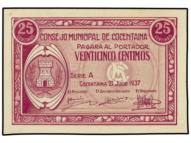 25 Céntimos. C.M. de COCENTAINA (Alicante). Sin firma en reverso ni pie de imprenta. TV-599c. SC.
