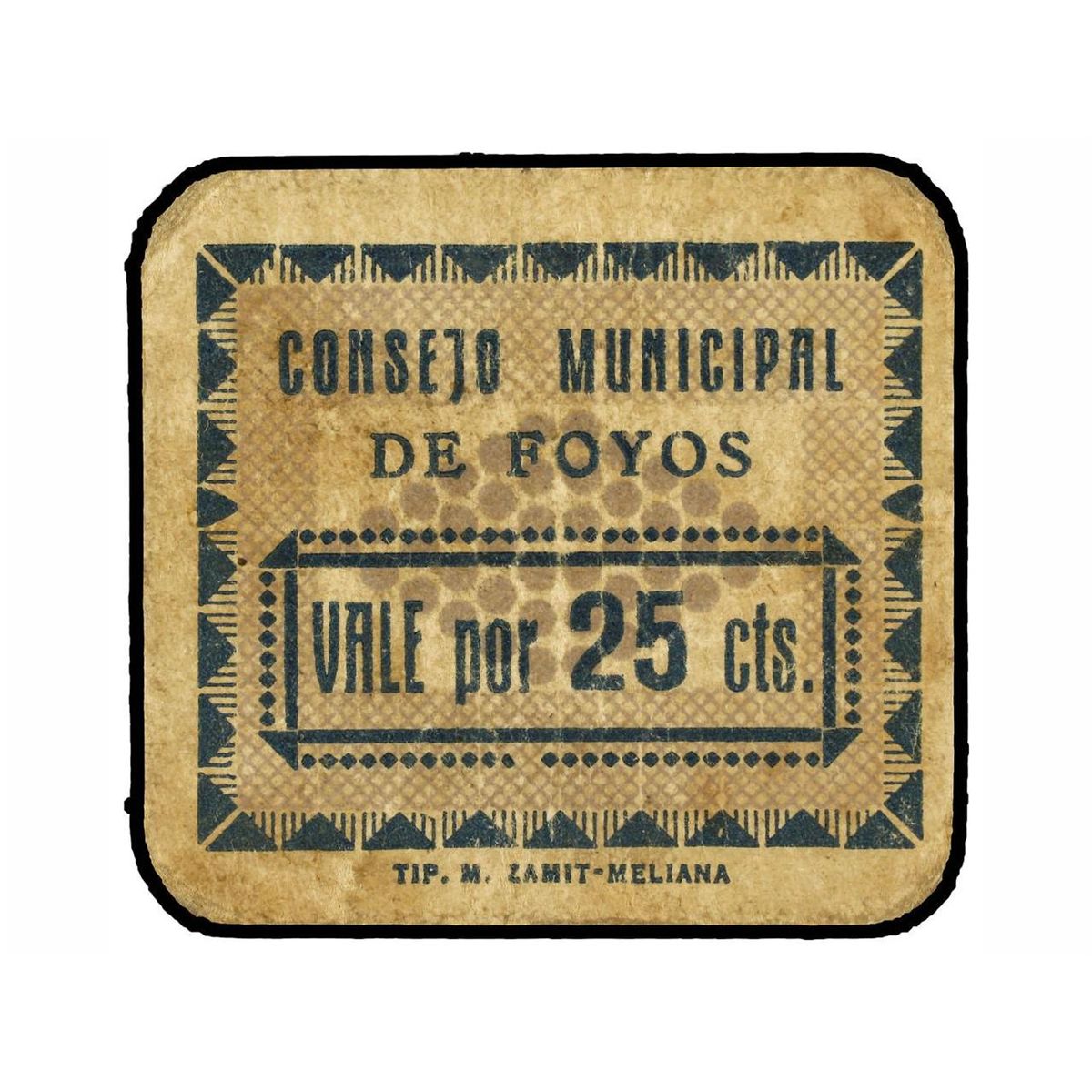 25 Céntimos. - C.M. de FOYOS (Valencia). - Cartón. RARÍSIMO. T-776. MBC+. - -