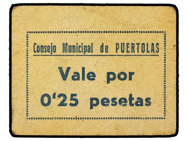 25 Céntimos. C.M. de PUERTOLAS (Huesca). Cartón. RARÍSIMO. EBC.