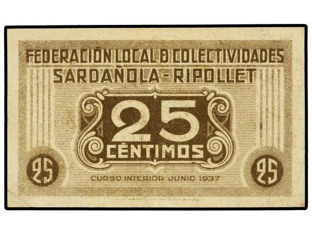 25 Céntimos. Junio 1937. FEDERACIÓN LOCAL DE COLECTIVIDADES. SARDAÑOLA-RIPOLLET.CNT-UGT. T-2635. MBC+.