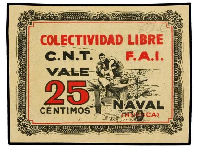 25 Céntimos. NAVAL (Huesca). COLECTIVIDAD LIBRE C.N.T.-F.A.I. Mont-993B. SC.