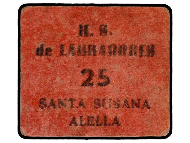 25 Céntimos ?. S/F. HDAD. SINDICAL SANTA SUSANA ALELLA. Cartón. MUY ESCASO. L-No cat. EBC-.