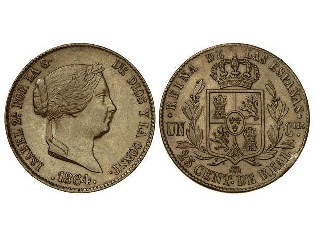 25 Céntimos de Real. 1864. SEGOVIA. Cal-599. EBC.