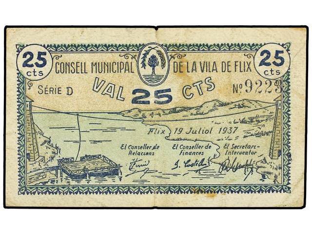 25 Cèntims. 19 Juliol 1937. C.M. de FLIX. AT-1020; T-1190. MBC+.