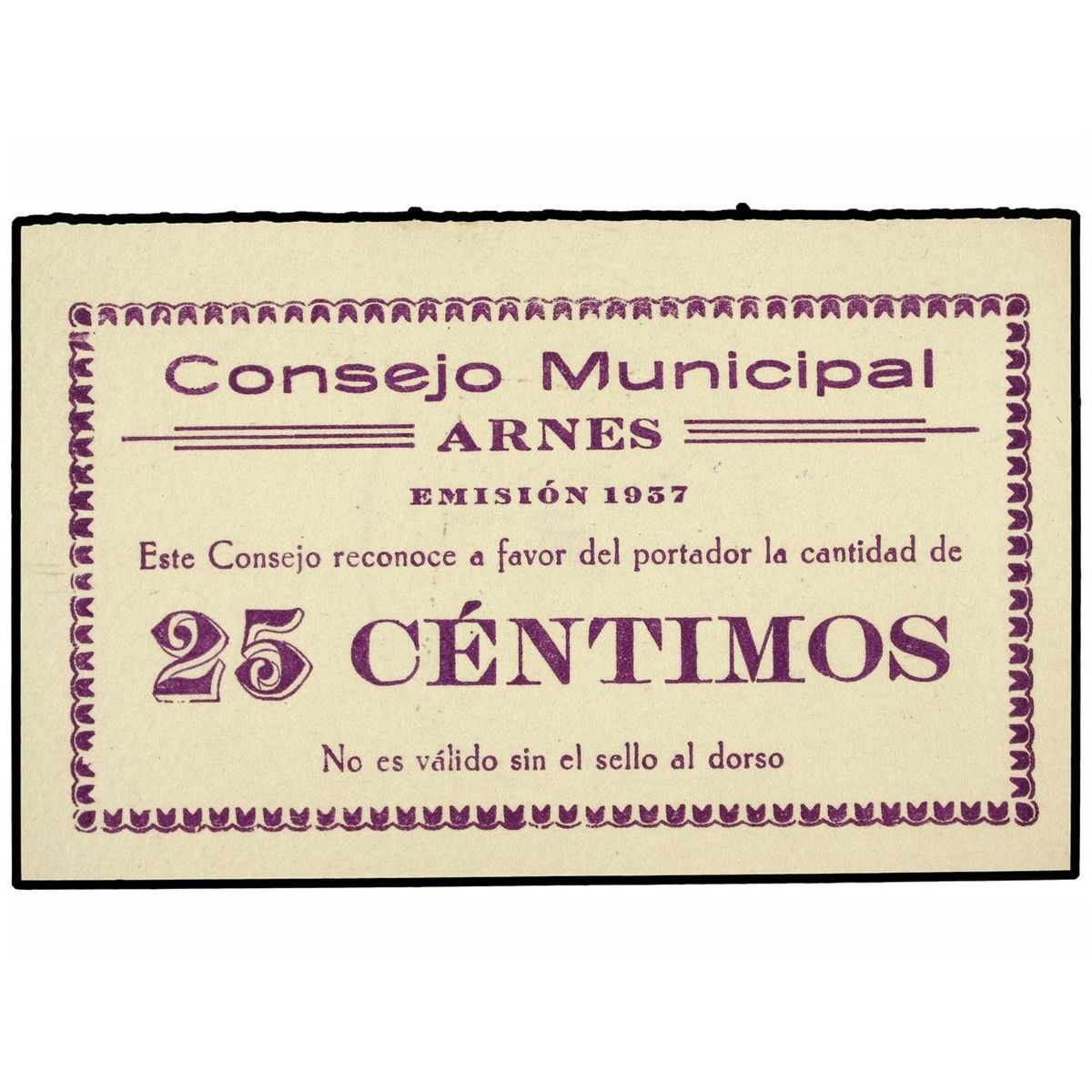 25 Cèntims. - 1937. - C.M. de ARNES. - RARO. AT-211; T-271. SC. - -