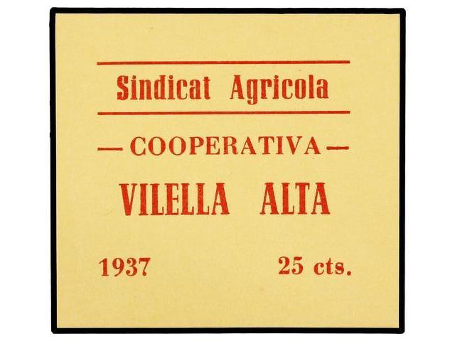 25 Cèntims. 1937. SINDICAT AGRICOLA COOPERATIVA VILELLA ALTA. Cartón. L-No cat. EBC+.