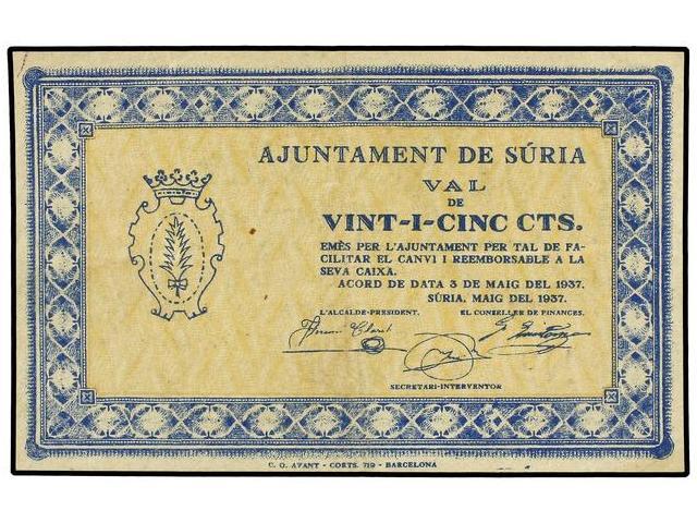 25 Cèntims. 3 Maig 1937. Aj. de SÚRIA. AT-2421; T-2811. MBC+.