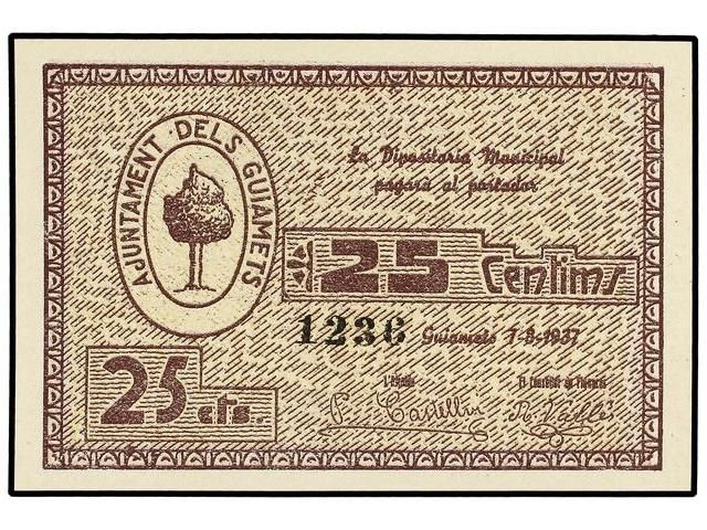 25 Cèntims. 7 Agost 1937. Aj. dels GUIAMETS. ESCASO. AT-1211. SC.