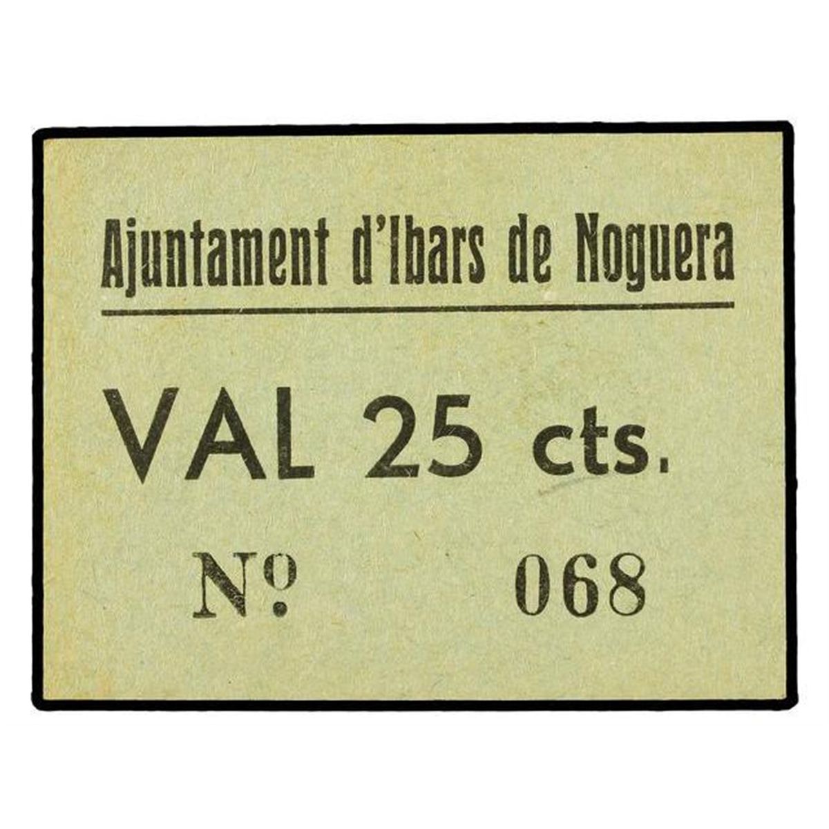 25 Cèntims. - Aj. d´IBARS DE NOGUERA. - Cartón. RARO. AT-1266; T-1442. EBC+. - -