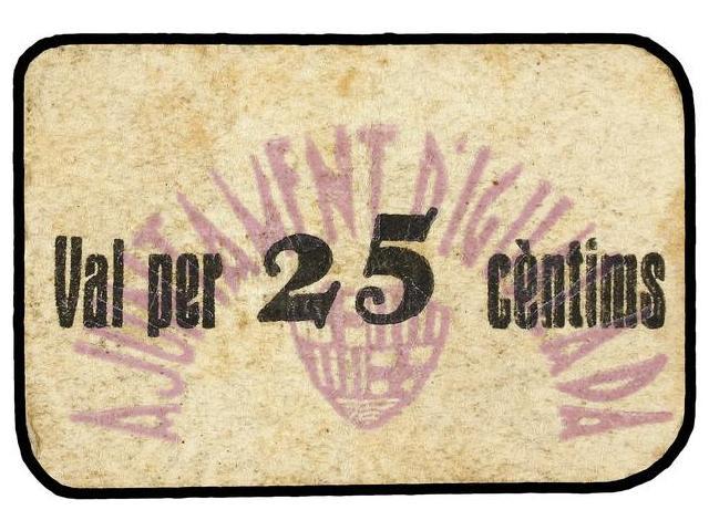 25 Cèntims. Aj. d´IGUALADA. Cartón. ´25´ inclinado. RARO. AT-1258; T-1453. MBC+.
