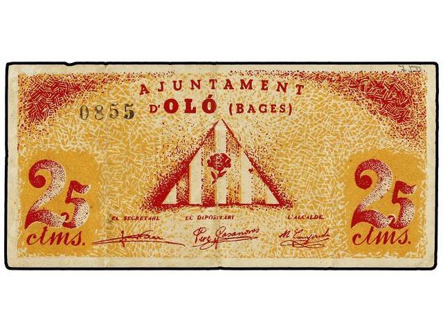 25 Cèntims. - Aj. d´OLÓ. - Sin sello tampón. ESCASO. AT-1693b. T-1942b. MBC+. - -