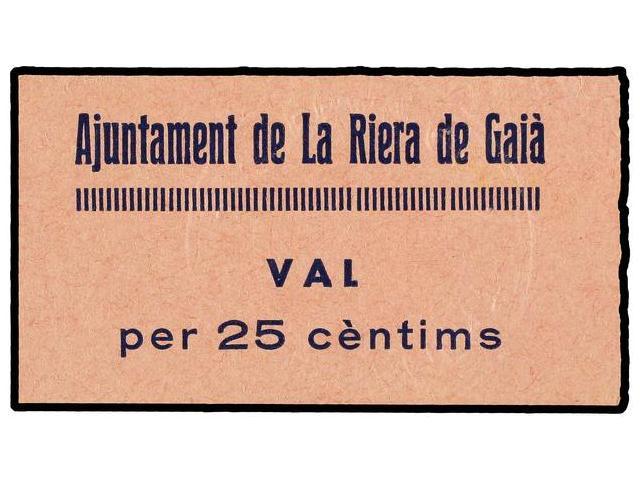 25 Cèntims. Aj. de LA RIERA DE GAIÀ. Cartón. RARO. AT-2126; T-2455. SC.