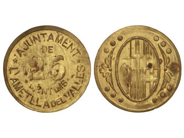 25 Céntims. Aj. de l´AMETLLA DEL VALLES. Latón. Vti-L13. MBC+.