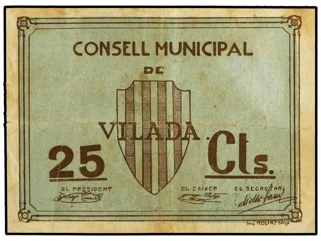 25 Cèntims. C.M. de VILADA. (Manchas). RARO. AT-2766. MBC.