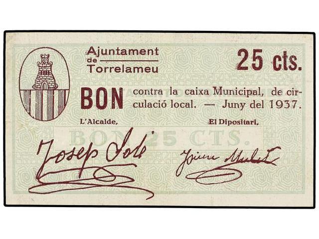 25 Cèntims. - Juny 1937. - Aj. de TORRELAMEU. - ESCASO. AT-2549; T-2966. EBC-. - -