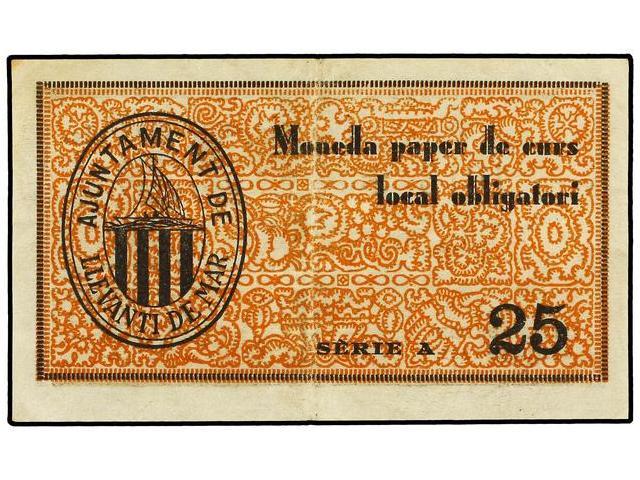 25 Cèntims. Novembre 1937. Aj. de LLEVANTÍ DE MAR. ESCASO. AT-1346; T-1543. MBC+.