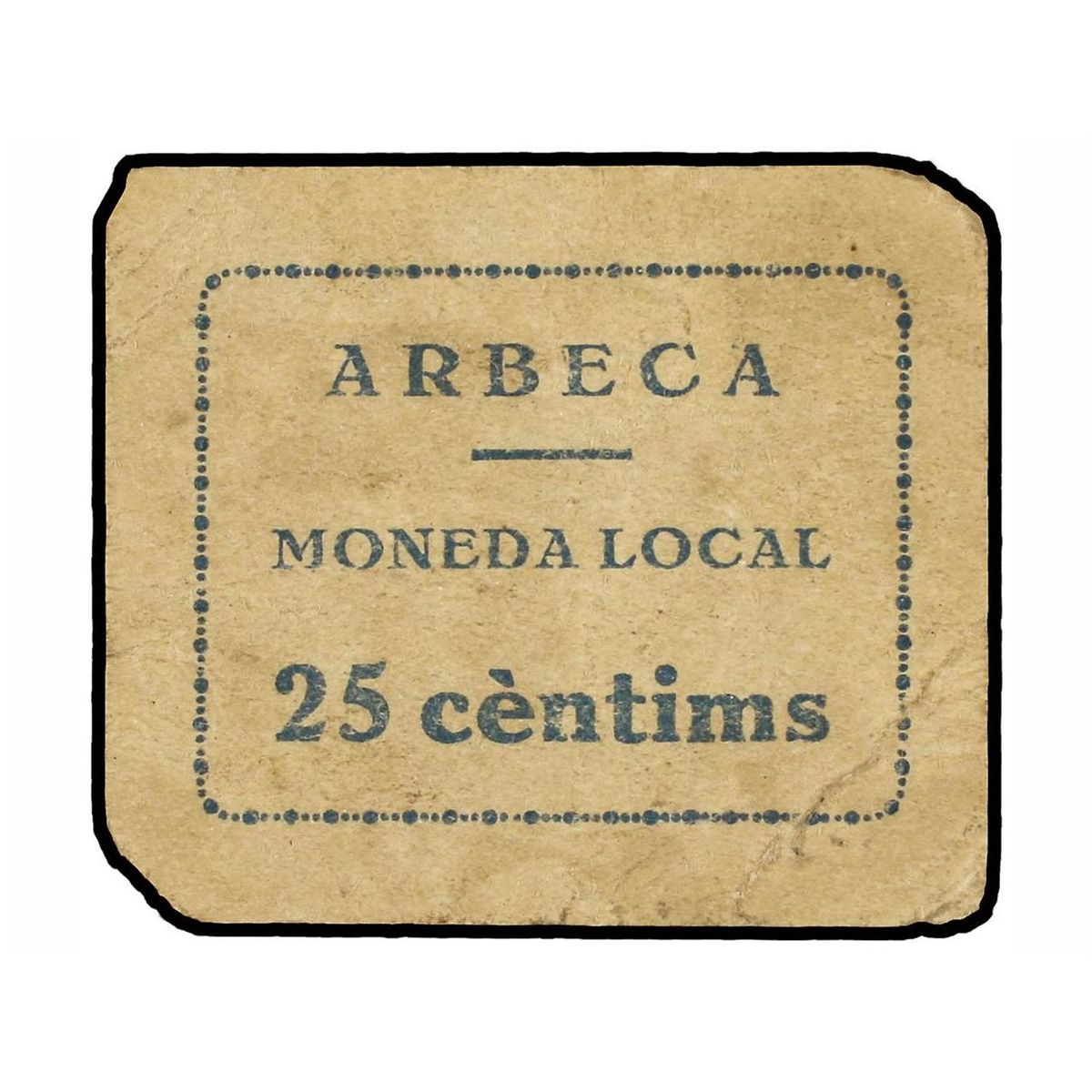 25 Cèntims. - S/F. - Aj. d´ARBECA. - (Algo sucio). MUY ESCASO. AT-165;T-221. MBC. - -