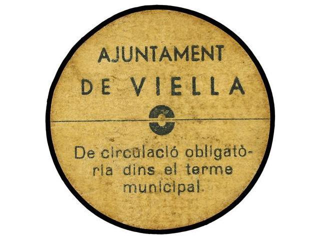 25 Cèntims. S/F. Aj. de VIELLA. Cartulina. (Algo sucio). RARO. AT-2756; T-3177. MBC+.