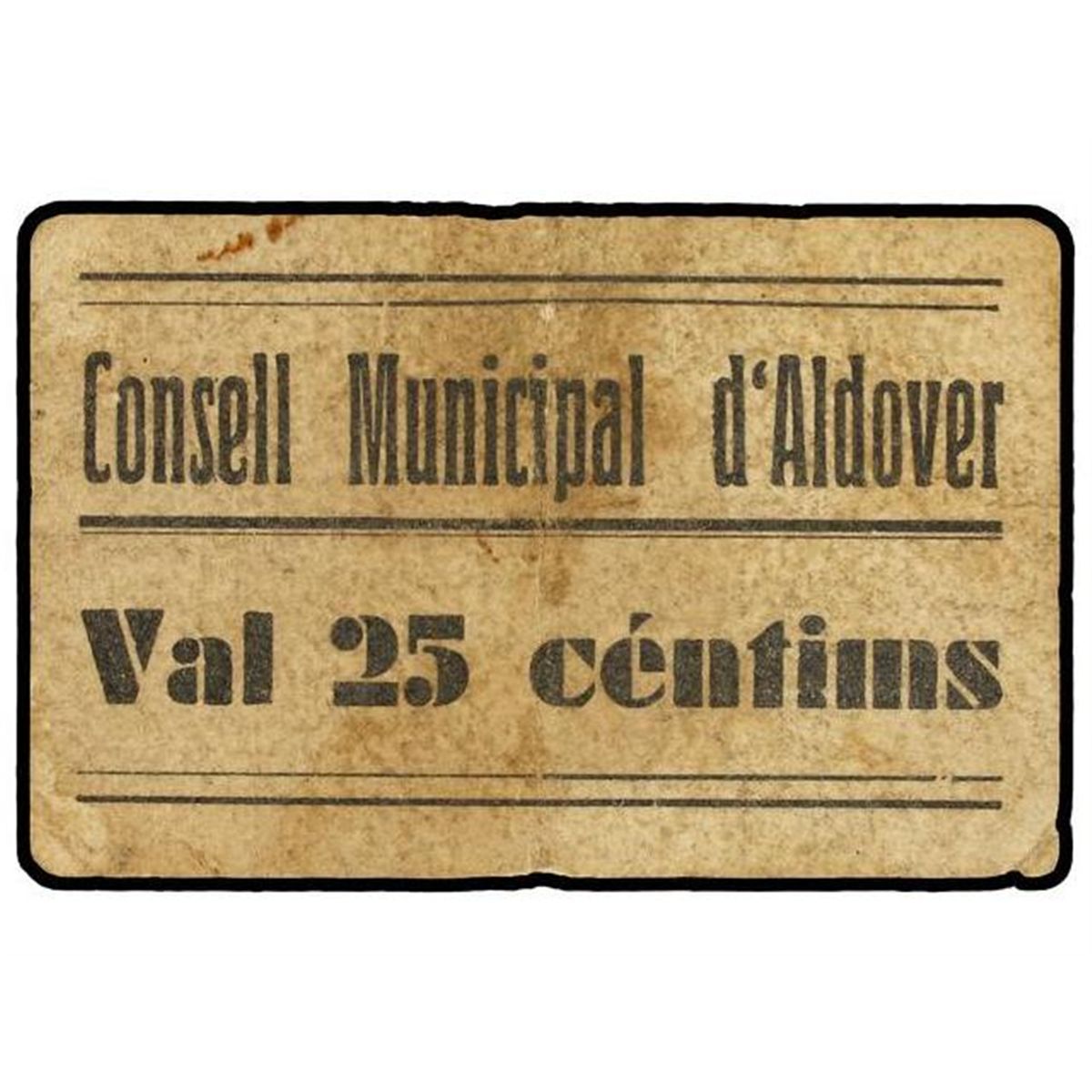 25 Cèntims. - S/F. - C.M. d´ALDOVER. - Cartón. (Sucio). RARO. AT-91; T-115. MBC. - -