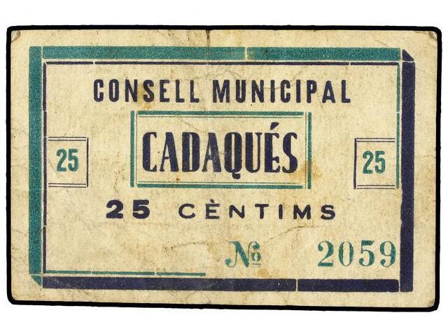 25 Cèntims. - S/F. - C.M. de CADAQUÉS. - MUY ESCASO. AT-573; T-672. MBC. - -