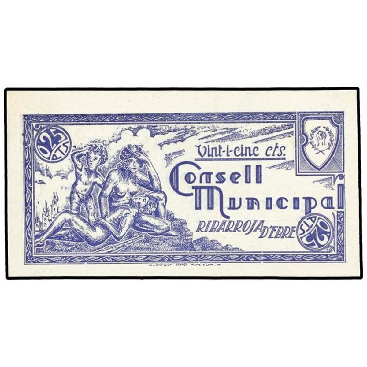 25 Cèntims. - S/F. - C.M. de RIBARROJA D´EBRE. - ESCASO. AT-2103; T-2433. MBC+. -