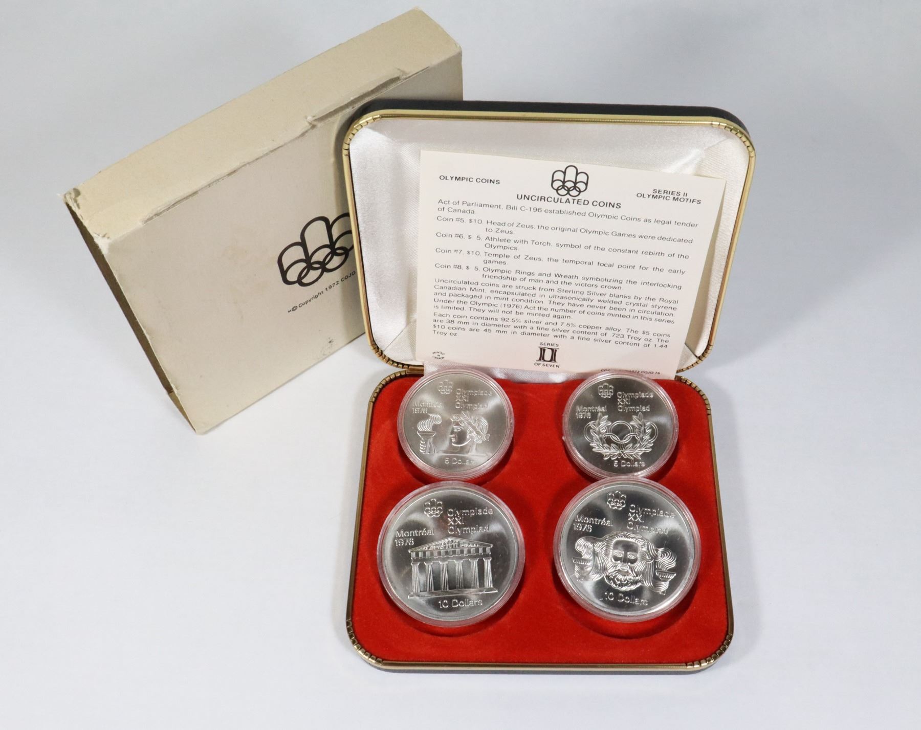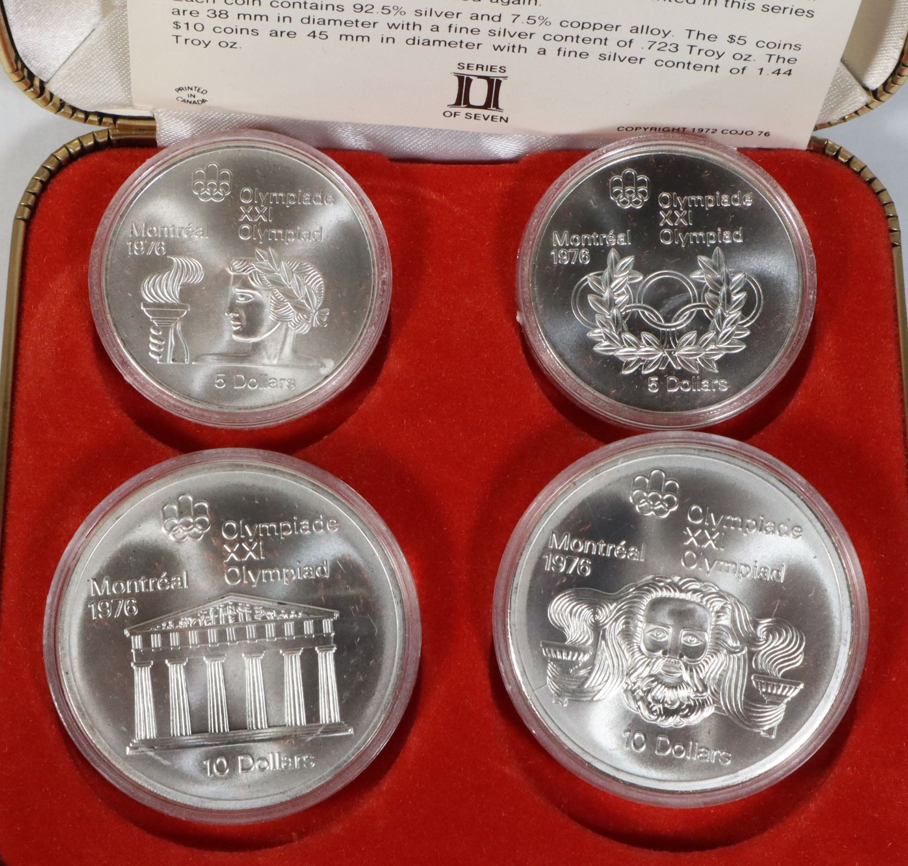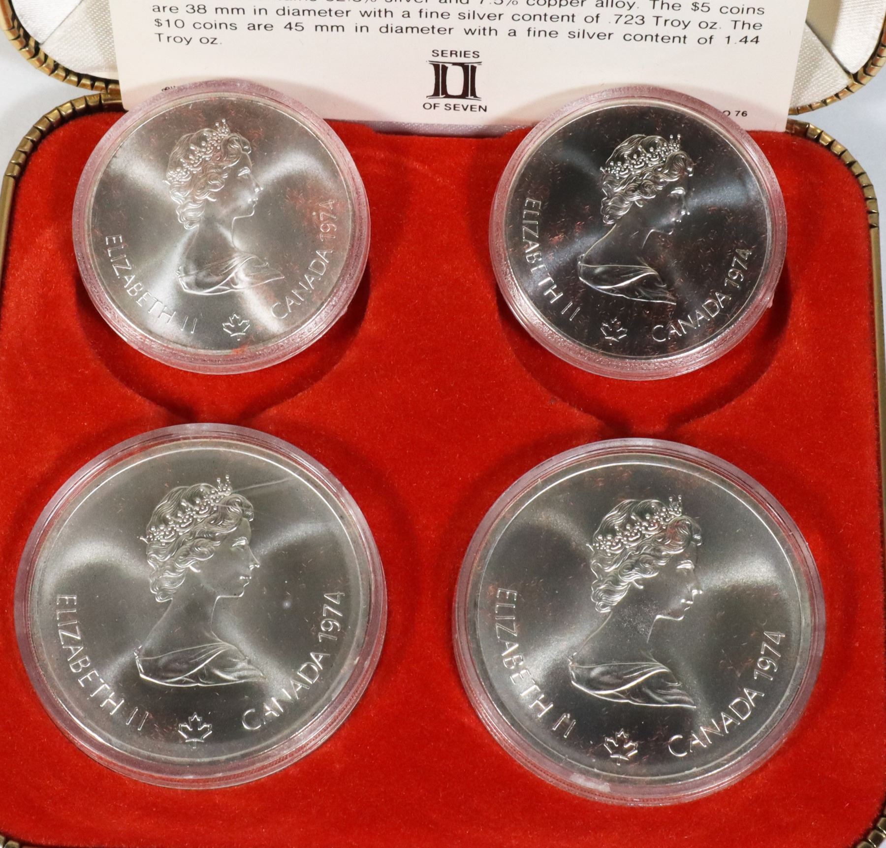 SET 4 COINS $5 + $10 COINS CASED CANADA MOTIFS