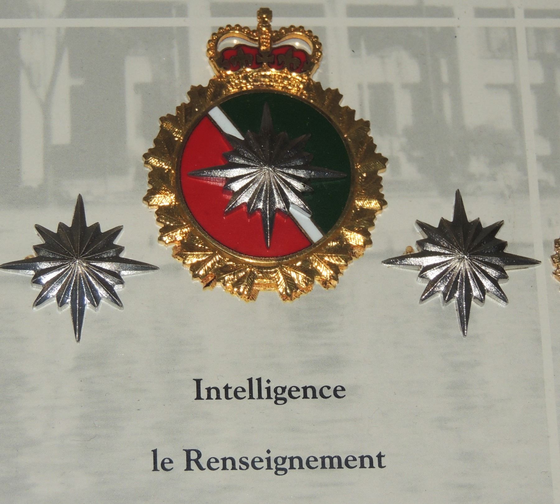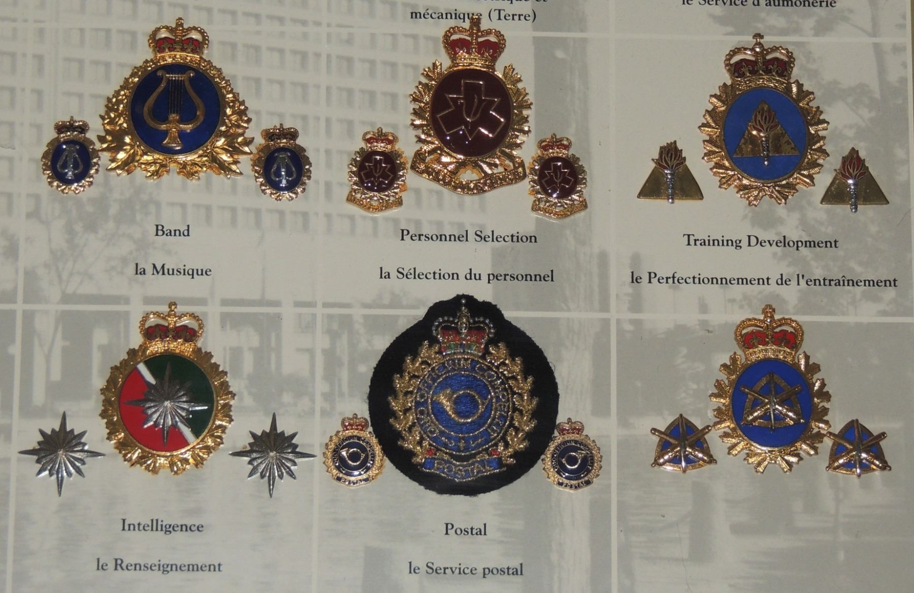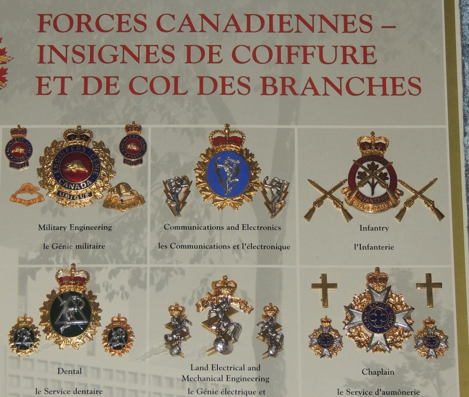 COLLAR BADGES 74 INSIGNIA TOTAL INCLUDING COLLARS IN 33X25 INCH FRAME CANADIAN ARMED FORCES MILITARY LATE 20TH CENTURY