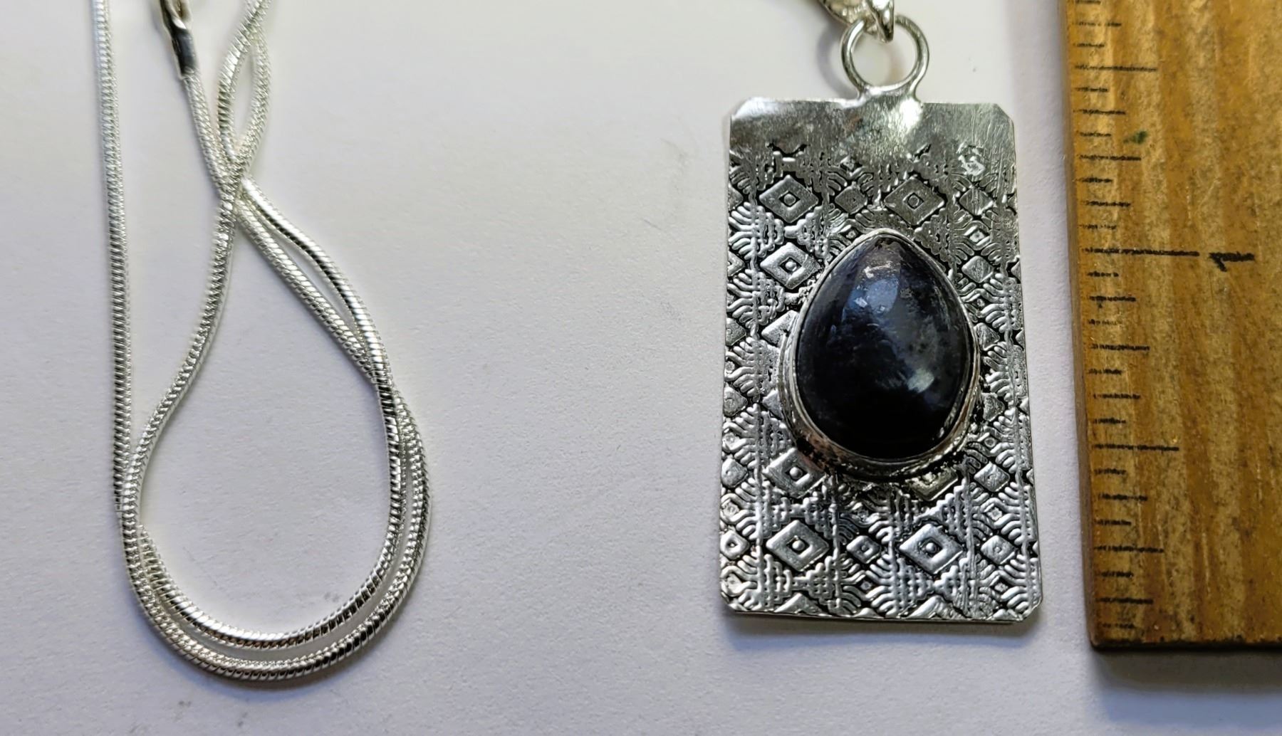 SET WITH PEAR SHAPED SODALITE GEMSTONE ON 20" SNAKE CHAIN. JEWELLERY