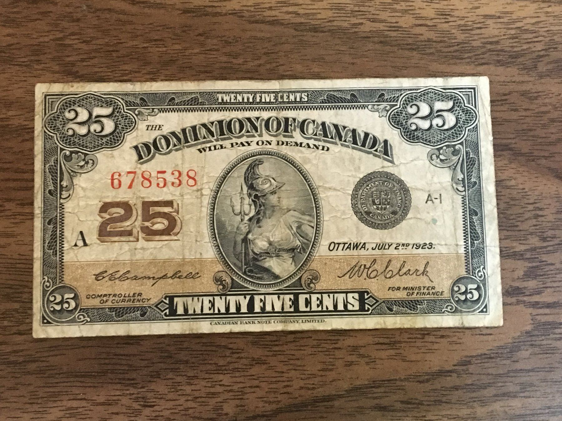 25 CENT BILL (CANADA) *1923* (SHINPLASTER)