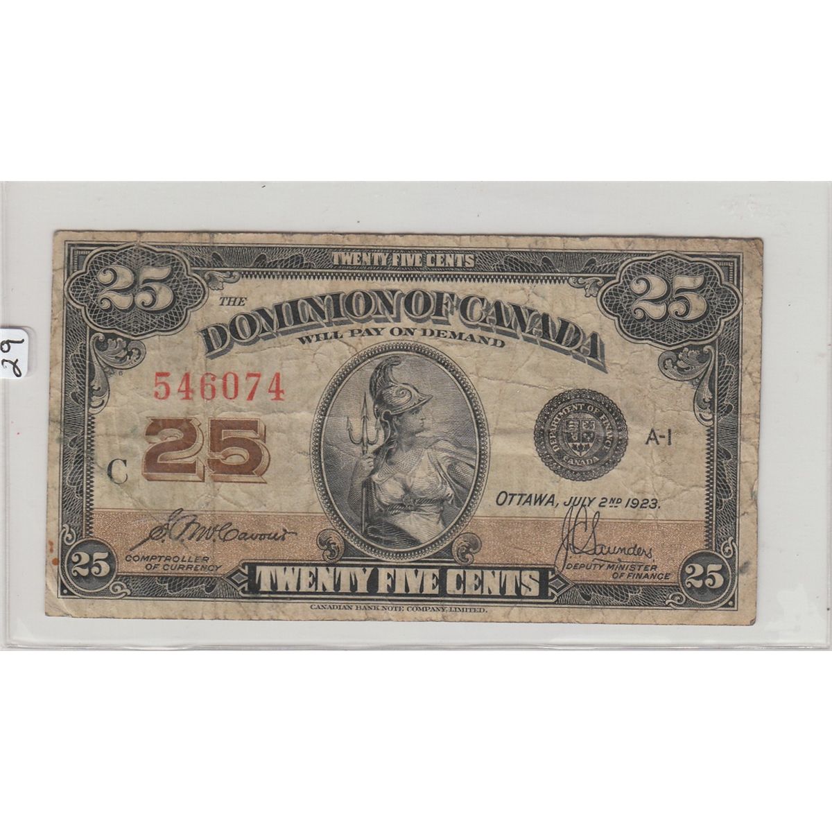 25 CENT DOMINION CANADA FRACTIONAL 1923